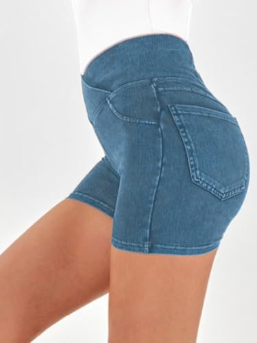 HOT ! High Waisted Jeans Shorts for Women Stretchy Shorts Crossover Denim Summer Bermuda Pants with Pockets Summer