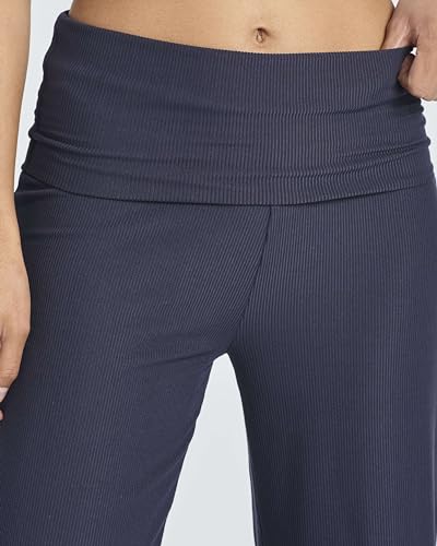 Real Essentials 3 Pack: Women's Ribbed Foldover Wide Leg Loose Capri Open Bottom Yoga Lounge Pants (Available in Plus) 6