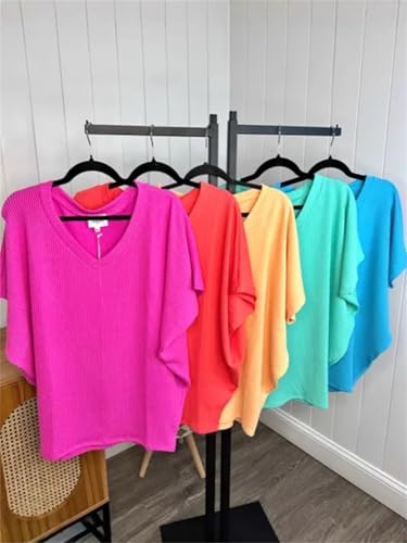 HOT ! Batwing Tops for Women – Oversized Casual T-Shirt with Banded Waist V Neck Short Sleeve Sweater