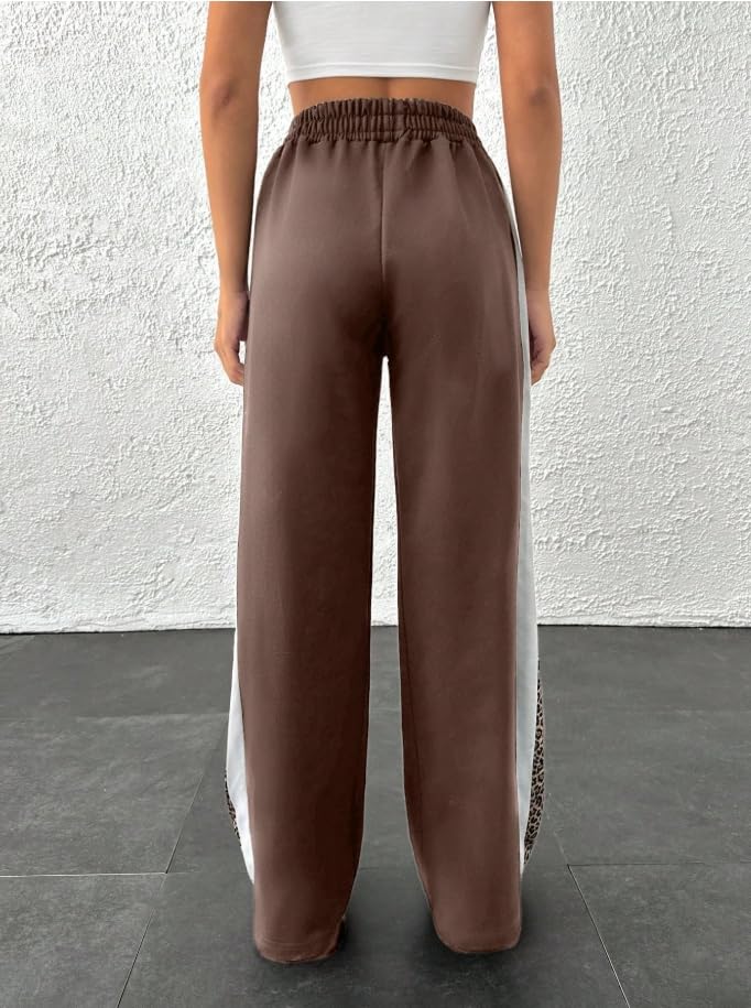Women’s High Waisted Wide Leg Sweatpants Leopard Stripe Athletic Jogger Pants for Casual,Workout,Lounge,Streetwear 5