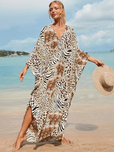 Women's Plus Size Animal Print V-Neck Batwing Kaftan Beach Dress Bathing Suit Cover-Up Loungewear 1
