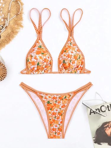 TASHEHE Women's Bikini Set High Leg Cut Double Straps Cute Triangle Swimsuit High Waist Two Piece Bathing Suit 2