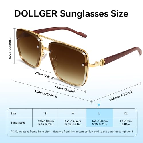 • HIGH-QUALITY MATERIAL:Dollger men's fashion sunglasses are made of high-quality metal frames. comfortable, and durable. Best-in-class sunglasses hinges and adjustable nose pads reduce pressure on the nose.Imitation wood temple design adds a touch of vintage sophistication, combining natural texture with modern style. Elevate your look and show off your unique taste.​ All the quality details will ensure you a perfect wearing experience.