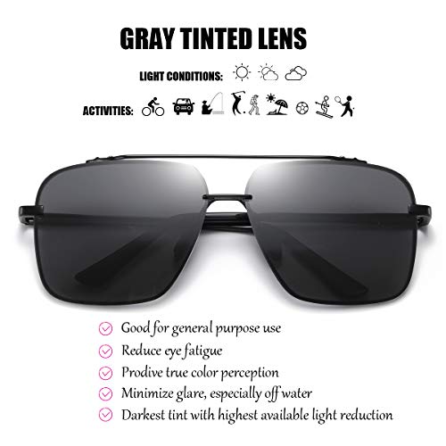 Square polarized sunglasses for men - Oversized Aviator Metal Frame - Gradient UV Protection Lenses 5