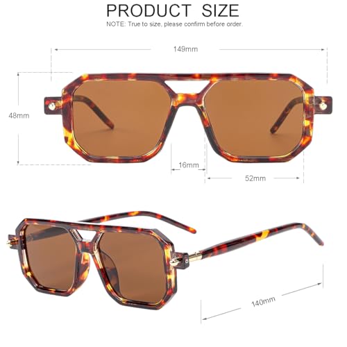 JOVAKIT Retro Aviator Sunglasses for Women Men Fashion Rectangle Sun Glasses Luxury Round Temples Designer UV400 Protection 6