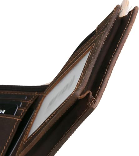 Men's Slim RFID Blocking Bifold Wallet Genuine Leather Minimalist Western Design with Credit Card Slots Brown (Brown) 7
