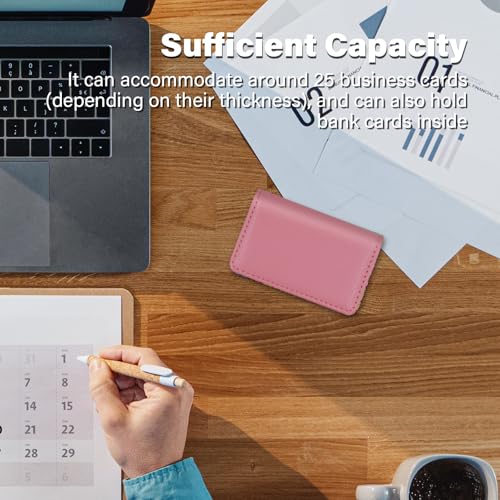 RFID Blocking Wallet - Minimalist Leather Business Credit Card Holder, PU Leather Wallet with Magnetic, Name ID Credit Card Case, Portable Carrier Purse for Business Social -Pink(LZW) 3