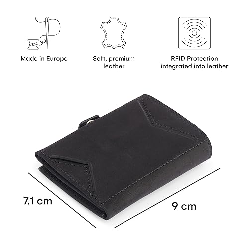 • SPACE-EFFICIENT DESIGN : Despite its small size, our wallet offers ample room for all your essentials – cards, notes and coins. Say goodbye to rummaging around at the checkout or in the restaurant.
