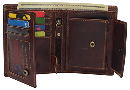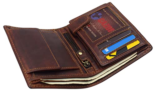 HOT ! Large RFID Genuine Vintage Leather Card Holder Bifold Trifold Wallet Snap Closure 2 ID Windows for Men (Vintage Brown)