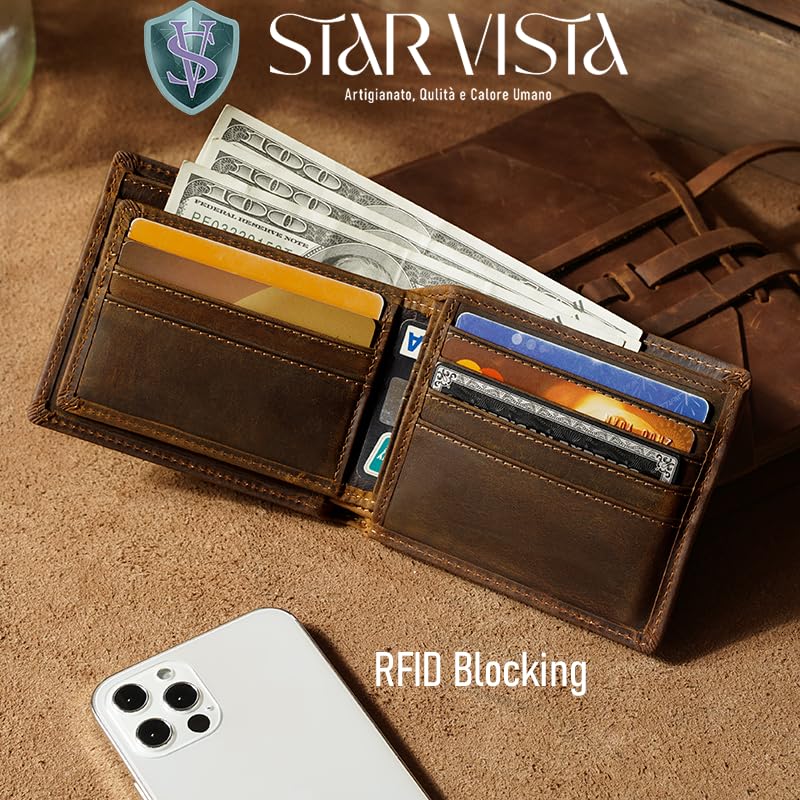 HOT ! STAR VISTA Falcon V2 Vintage Slim Bifold Leather Wallet for Men, Detachable Bifold Card Case, Dual Bill Pockets, 14 Card Slots, RFID Blocking, ID Window, AirTag Holder
