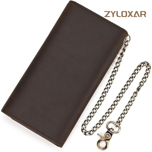 Genuine Leather Wallet for Men Long Trifold Biker Chain Wallet with RFID Blocking Anti Theft Design for Motorcycle Riding Daily Use or Gifts (Brown) 6