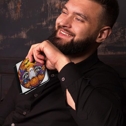 HOT ! Stained Glass Halloween Raccoons Ghost Soft PU Leather Bifold Wallet, Coin Purse Credit Pass Case, Durable Card-Holder Slim Billfold for Men Woman Money Storage