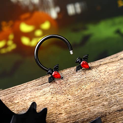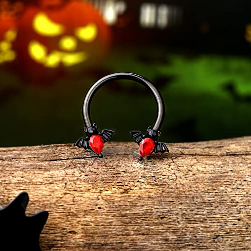 • Style of Halloween Septum Rings: 1pc 16G Septum Ring 316L Surgical Steel with Bat Clear Red CZ Septum Jewelry Helix Earrings for Women Men.