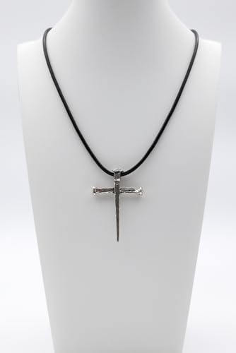 More information about Nail Cross Necklace Sterling Silver 925 – Christian Three Nails Crucifixion Pendant for Men | Handmade in Jerusalem with Oxidized Antique Finish & Leather Cord
