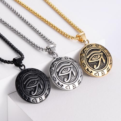 HOT ! 3Pack Set Eye of Horus Pendant Chain Necklace for Men Women,Stainless Steel Ancient Egyptian Men Necklaces,Titanium Steel Black Gold Silver Egyptian Eye of Ra Horus Pendant Charm Protection Amulet Necklace Jewelry for Men Women