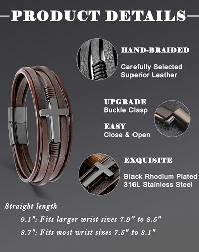 • Stunning Design: YL cross christian black leather bracelet for men are made of hand-braided by skilled artisans, black rhodium plated 316L stainless steel, upgrade buckle clasp, easy close and open