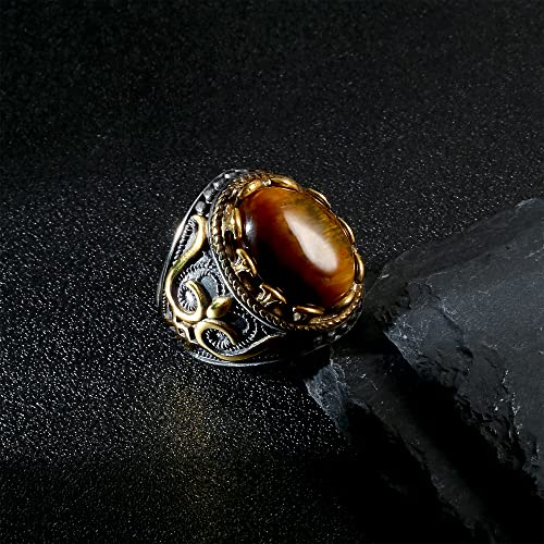 Dochais Retro Large Tiger Eye Stone Mens Ring Turquoise Vintage Ring for Men Oval Gemstone Stainless Steel Ring Size 7-13 6