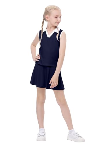Kids Girls Tennis Golf Dress Outfit Sleeveless Dress with Pockets Athletic Skorts and Polo Tank Top Sets 5