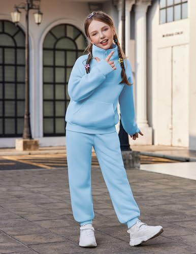 Zaclotre Girls Sweatsuit 2 Piece Outfits Fall Winter Fleece Half Zip Thumb Hole Sweatshirts and Sweatpants Joggers Set 6