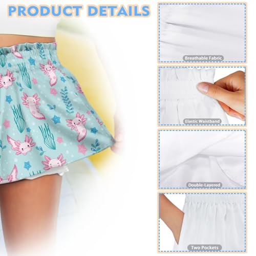 • FLOWY SHORTS: This flowy shorts can keep your daughter cute and comfy while athletic. Featuring flowy pleated legs that create skirt-like effect. The material is see-through and the inside spandex shorts can give girls more privacy. To ensure the perfect fit, our shorts are available in a range of sizes, 3-4/5-6/7-8/9-10/11-12/13-14/15-16, please choose the size according to the size chart before purchasing.