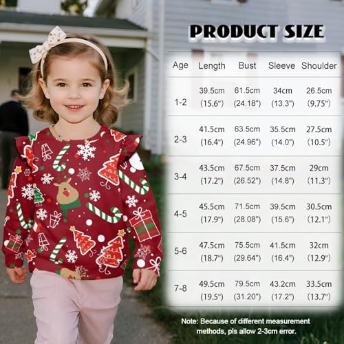 HOT ! Sweatshirt for Toddler Baby Girls Casual Crewneck Pullover Long Sleeve Tops with Ruffle Trim Soft Shirts 1T-8T
