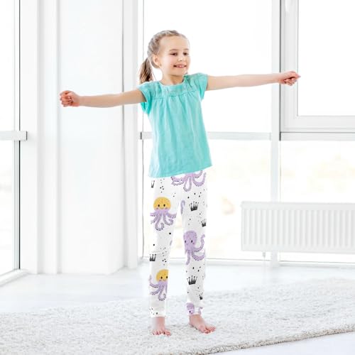 Cute Octopus Purple Girls' Leggings Toddler Doodles Yellow Color Kids Yoga Pants Dance Active Tights 4T 6