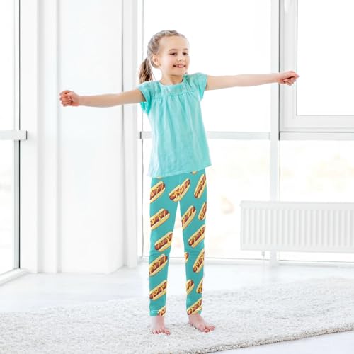 Hot Dogs Girls' Leggings Toddler Doodles Turquoise Kids Yoga Pants Dance Active Tights 4T 6