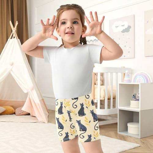 Watercolor Black Cat and Leaf Girls Shorts Elastic Waist Sports Shorts Girls Leggings Pants for 4-10 Years 4