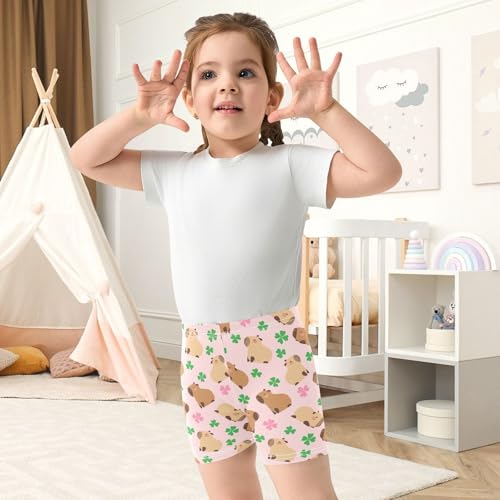 Capybara with Lucky Clover Pink Girls Shorts Elastic Waist Sports Shorts Girls Leggings Pants for 4-10 Years 4