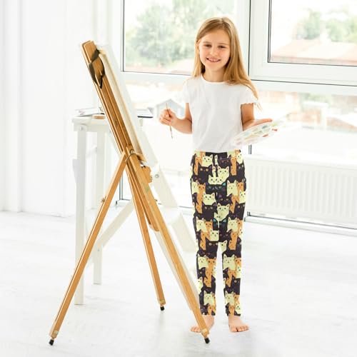 Cute Cat Girls' Leggings Toddler Doodles Kids Yoga Pants Dance Active Tights 4T 5
