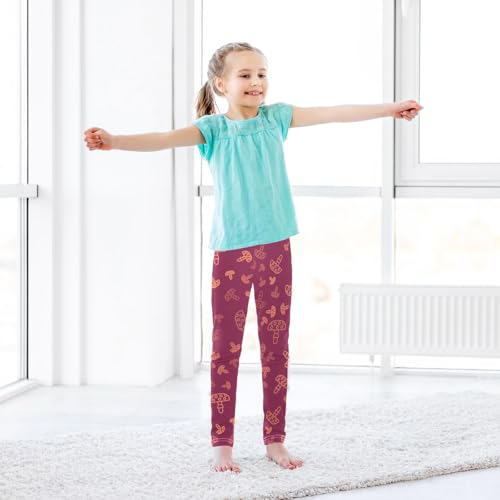 Mushroom on Red Girls Leggings,Workout Leggings for Girls Toddler Athletic Leggings Size for 3-10T 7