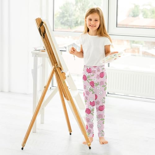 Cute Cherry Flowers Girls Leggings,Workout Leggings for Girls Toddler Athletic Leggings Size for 3-10T 4