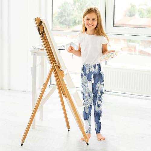 Bolaz Toddler Girls Leggings Printed Yoga Pants Leggings Blue Peony for Kids 7