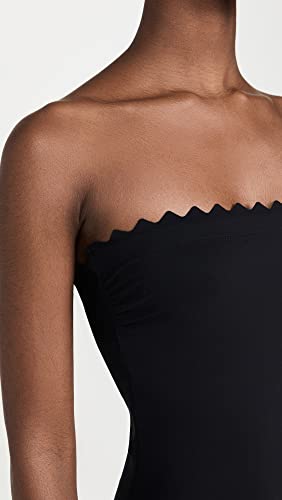 • Scalloped edge trim, Strapless silhouette , Non-slip rubber binding at hem, Built-in shelf bra