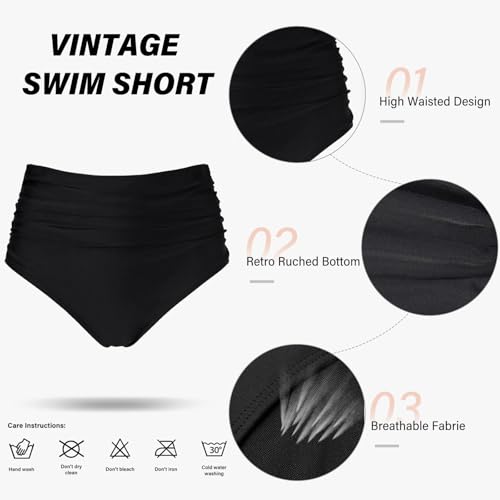 • Ruched Swimwear Bottoms: Our bathing suit bottom with its high waist design offers moderate coverage and shapes little tummy control while maintaining a stylish look.