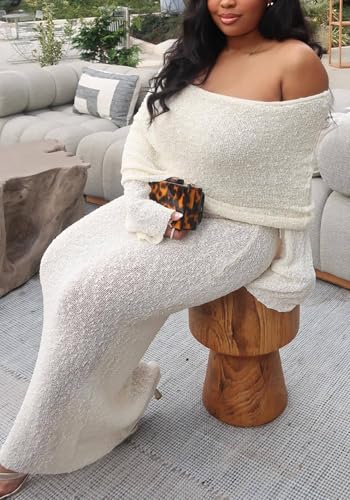 More information about LETSVDO Women's Off Shoulder Maxi Dress Long Sleeve Bodycon Knit Crochet Mesh Sweater Sexy Vacation Party Dresses