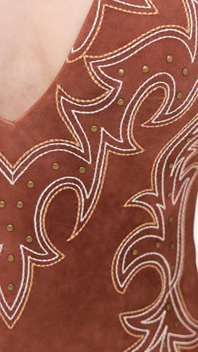 • Open back with crisscross straps, Western inspired stitching and stud embellishments at front