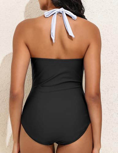 • Flattering Slimming Bathing Suits: Features a bandeau neckline, self-halter tie, ruched front detailing, and elastic mesh lining to smoothly contour your figure and provide tummy control for a sleek silhouette
