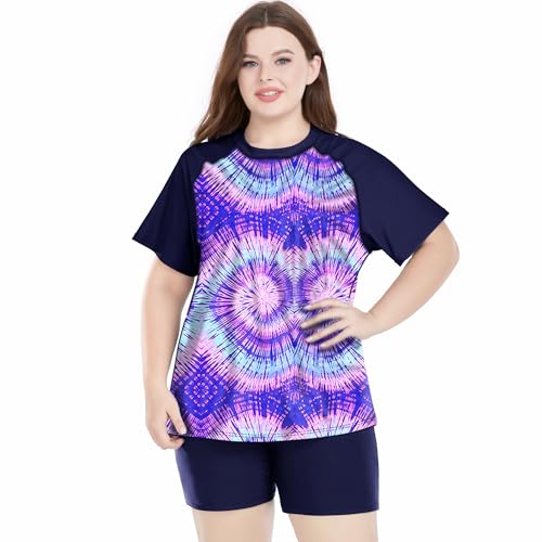 Davena Women's Plus Size 2 Piece Rash Guard Short Sleeve Swimsuit with Boyshorts Swim Shirt UPF 50+ 6