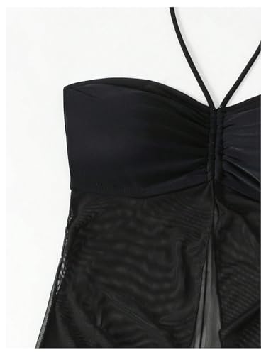 More information about WDIRARA Women's 3 Piece Halter Smocked Swimsuit High Cut Bikini Set with Mesh Skirt