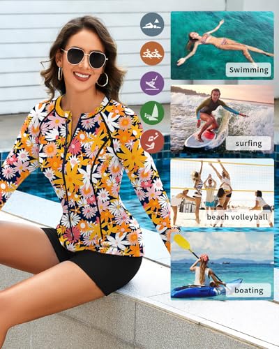 • UV Swim Tops with Thumb Holes: Surf tops/swimming shirts with thumbholes to avoid sunburn on your hands ; Full zip design for easy on and off; various print design make you stand out and look even more colorful.