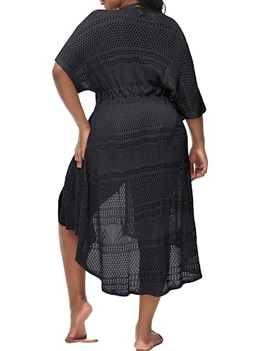 • 【Black crochet cover ups plus size】Plus size hollow out cover ups for swimwear is perfect for a beach party, swimming pool party, cruising, vacation, and casual wear in spring and summer