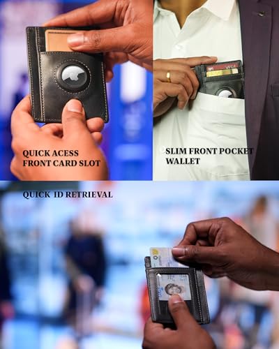 HOT ! Luxury Airtag wallet RFID blocking card holder wallet with built in Airtag holder- Slim Minimalist front pocket billfold leather wallet card wallet for men with ID window (Luxe Black)