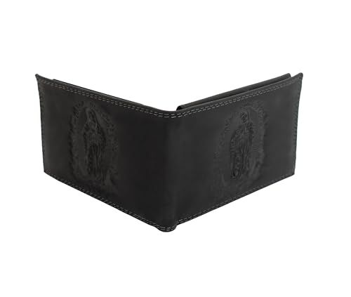 Our Lady of Guadalupe Virgin Mary Genuine Leather Bi-Fold Wallet Black, Cartera Vaquera (Black) 1