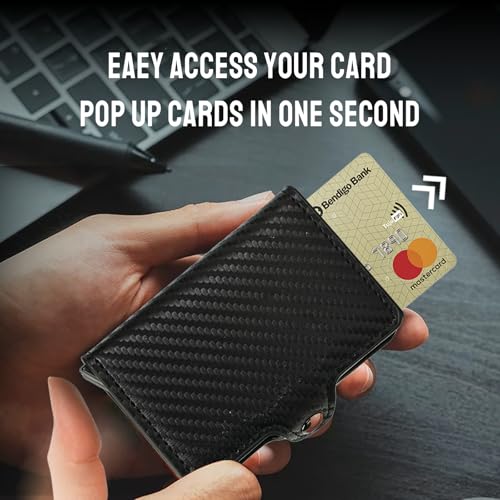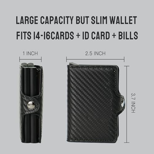 HOT ! Leather Wallets for Men with Slim Pop Up Card Holder for 14-16 Cards,RFID Blocking Bifold Minimalist Smart Wallet,Credit Card Holder with Cash Slot gifts for men(Carbon black)
