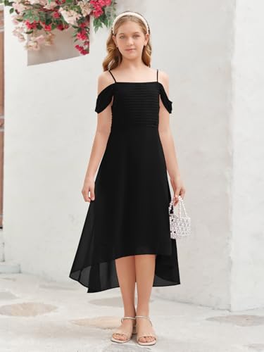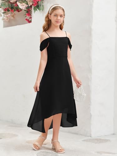 Imily Bela Girls Cold Shoulder Junior Bridesmaid Dresses Asymmetrical Chiffon Wedding Party Gown Dress 6