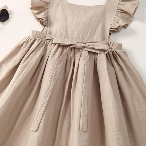Toddler Girl Dress Kids Sleeveless Ruffle Cotton Linen Dresses Button Beach Summer Outfits Casual Party Dresses 4