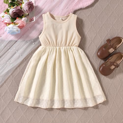 Toddler Girls Solid Sleeveless Swiss Dots Dress and Long Sleeve Knit Tie Front Cardigan Set 2 Pieces Outfits 6