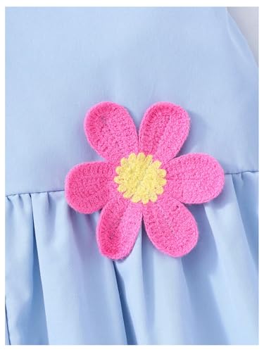 Girl's Cute 3D Floral Tank Dress Button Down Collar Sleeveless Flared Short Dresses 4