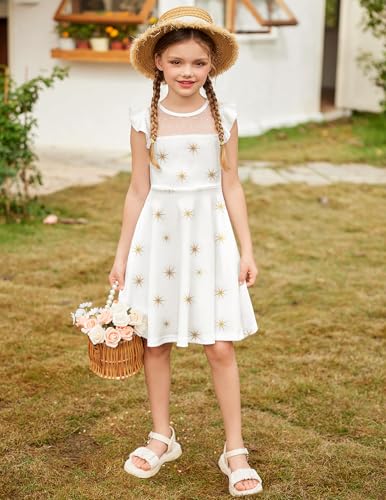 Arshiner Girls Dress Summer Ruffle Sleeve Mesh A Line Casual Party Dresses with Pockets 6
